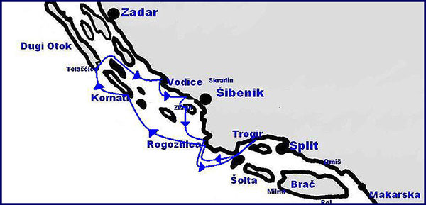 Trogir - Rogoznica - Kornati - Telašćica (Dugi Otok) - Vodice - - Skradin (Wasserfälle Krka) -