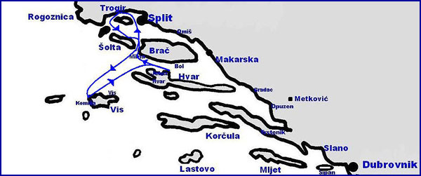 olta (Stomorska) - Vis (Komiža) - Hvar - Stari grad - - Milna - Trogir