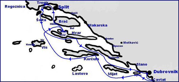 ipan (Slano) - Korčula - Jelsa (Vrboska) - Bol - Milna - Trogir
